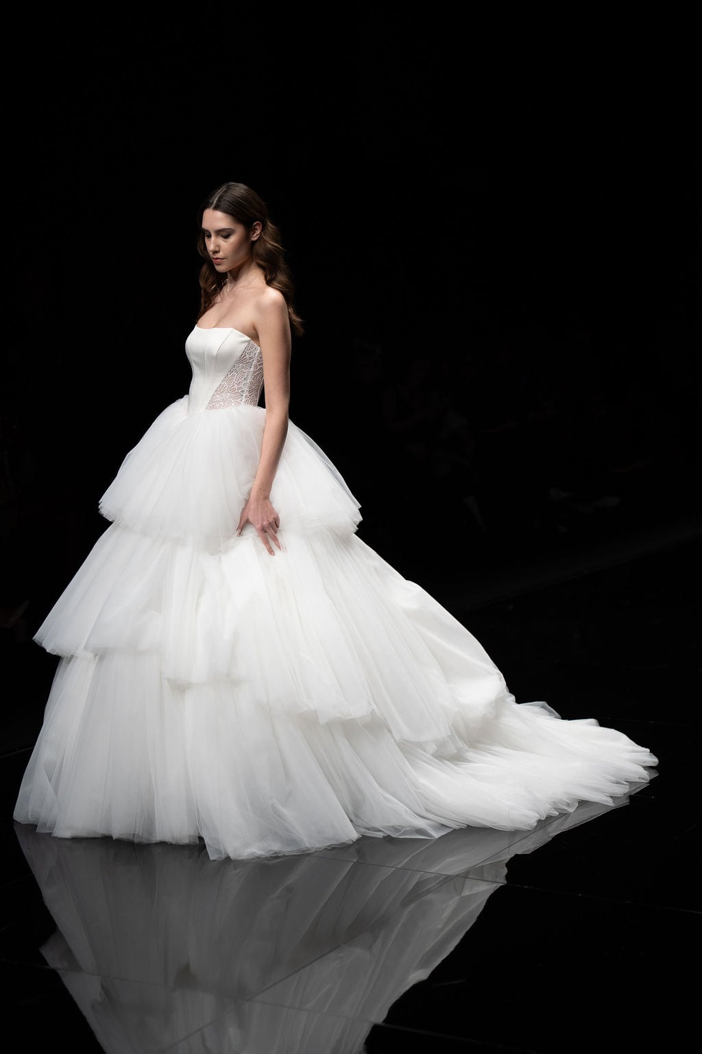 Während die Ariamo Fashion Group ein Jahrzehnt des Erfolgs feierte, ließ Madioni seine neue, mutige Stimme lauter denn je erklingen — ein Zeichen für den aufregenden Beginn einer neuen Ära. Mit Collette lädt Madioni jede Braut ein, sich abzuheben, zu strahlen und ihre unvergessliche Schönheit zu feiern.