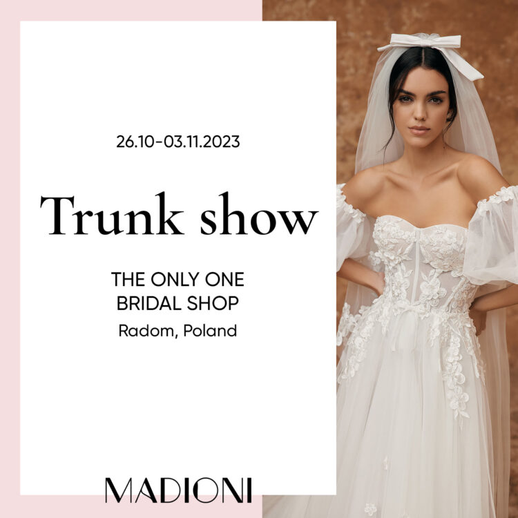 Dear ladies, From October 26th to November 3-d, 2023, The Only One Bridal Shop will be hosting a trunk show featuring the Madioni brand. Join us for this exclusive event!